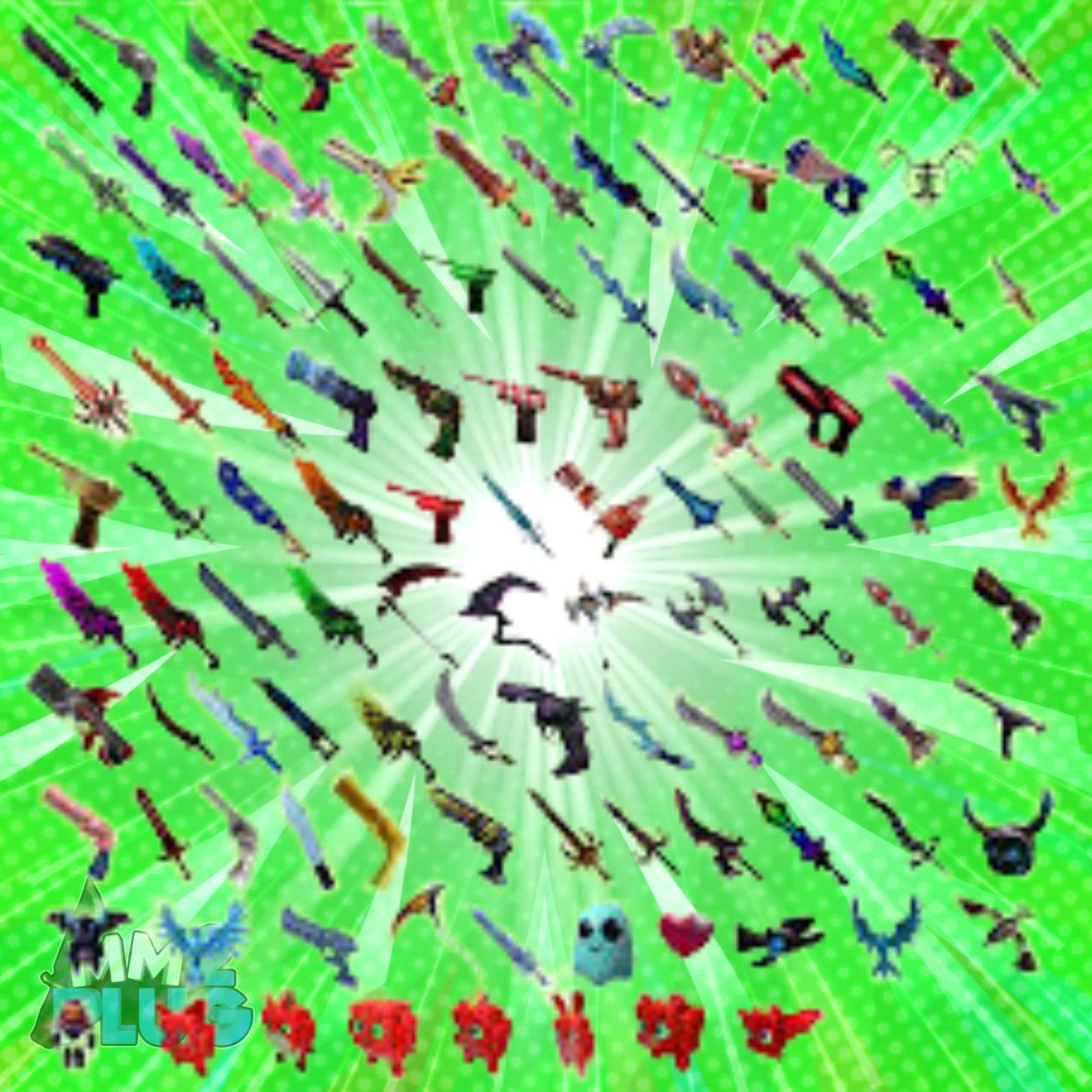 Bioblade, Darkbringer, Eggblade, Eternal 3, Eternal 4, Gemstone, Heartblade, Lightbringer, Nebula, Prismatic, Amerilaser, Blaster, Blue Seer, Clockwork, Deathshard, eternal, Eternal 2, Fang, Flames, Heat, Laser, Luger, Nightblade, Old Glory, Orange Seer, Pixel, Purple Seer, Red Seer, Saw, Green Seer, Shark, Slasher, Tides, Virtual, Yellow Seer, America Gun, Blood Knife, Cowboy, Ghost Knife, Golden Gun, Laser (Disintegrator), Phaser, Prince, Shadow, Splitter, Icebreaker, Icewing, Logchopper, Candycane, Chill, Cookieblade, Eternalcane, Frostbite, Frostsaber, Ginger Luger, Gingerblade, Green Luger, Handsaw, Ice Dragon, Ice Shard, Iceblaster, Jinglegun, Lugercane, Minty, Peppermint, red Luger, Snowflake, Sugar, Winter's Edge, Xmas, Batwing, Elderwood Scythe, Hallowscythe, Battleaxe, Battleaxe 2, Boneblade, Elderwood Revolver, Ghostblade, Hallow's Blade, Hallow's Edge, Hallowgun, Pumpking, Spider, Vampire's Edge, Deathspeaker, Electro, Fire Bat, Fire Bear, Fire Bunny, Fire Cat, Fire Dog, Fire Fox, Fire Pig, Frostbird, Ice Phoenix, Icey, Phoenix, Sammy Eagle, Skelly, Steambird, Traveller, and <3